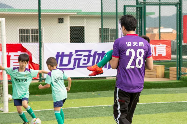 中国香港著名演员洪天明担任了广东省民间青少年足球联赛的形象大使,今天他也在现场与参赛的小球员一起切磋球技。