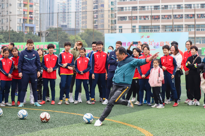 广州市足协主席谢志光在活动上献技