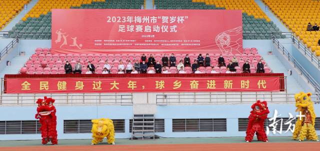 为丰富广大人民群众春节期间文体生活,营造欢乐和谐的节日氛围,1月16日,2023年梅州市“贺岁杯”足球赛启动仪式在梅县区宪梓体育场举行。