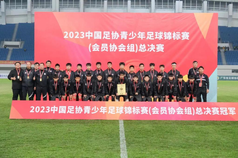 2月26日晚,在广东肇庆举行的2023年中国足协青少年足球锦标赛U14决赛中,广东足协一队3:0战胜大连足协队,夺得冠军。