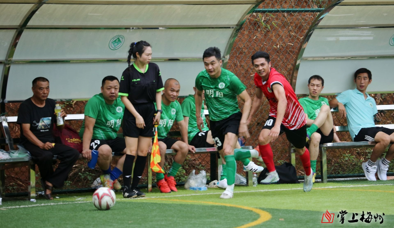 带球过人、突破防守、下底传中,队友及时赶到轻松破门,全队击掌相庆。“好球,这球进得太漂亮了……”现场球迷们发出阵阵赞叹声。6月21日晚,梅江区城北镇东辉足球俱乐部训练基地内灯火辉煌,热闹非凡,这里正在举行的梅江区城北镇第二届八环水泥夏季乡村足球联赛(村超)吸引了众多当地村民的围观。