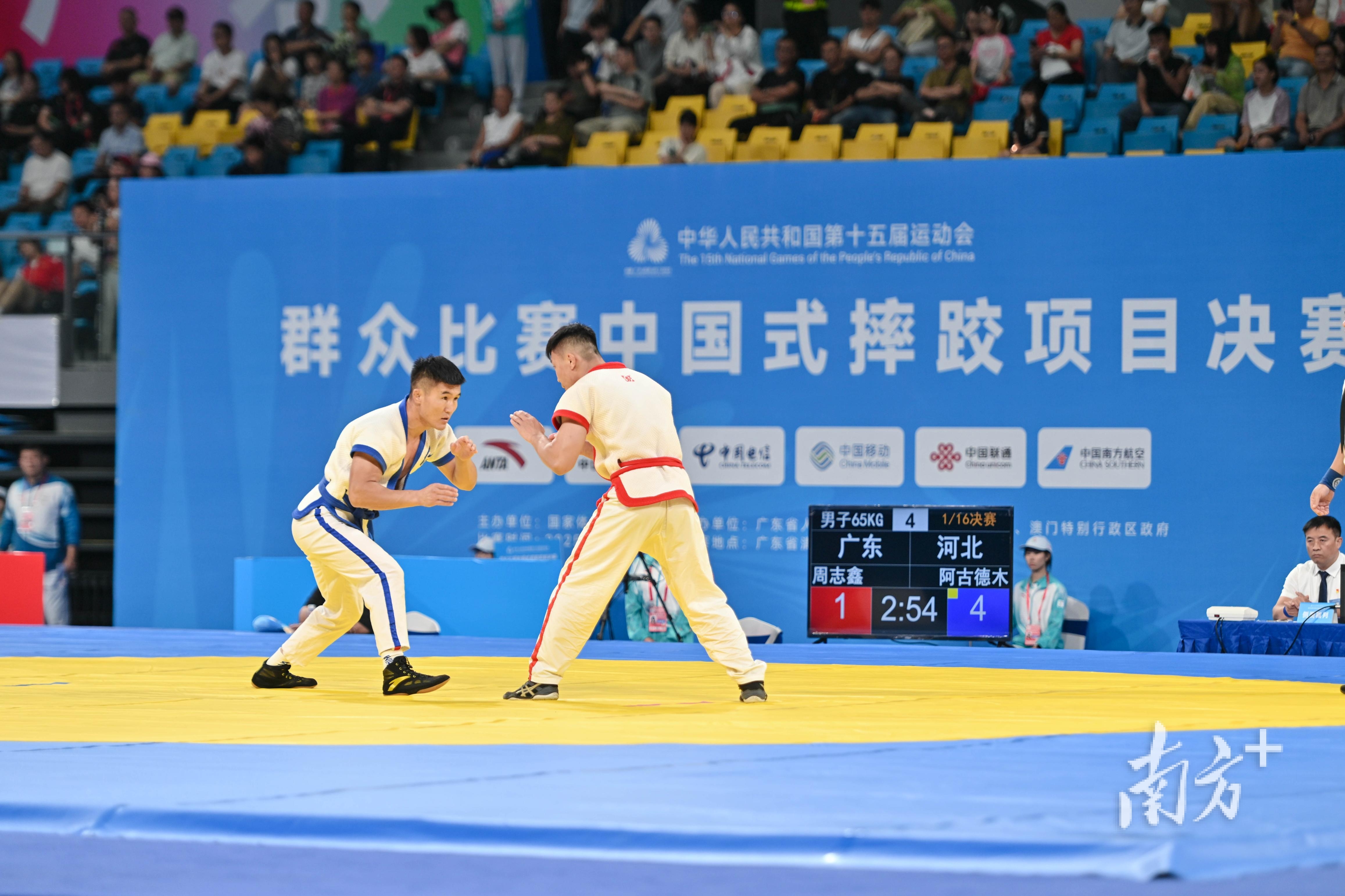 7月24日,十五运群众比赛中国式摔跤项目决赛在清远开赛