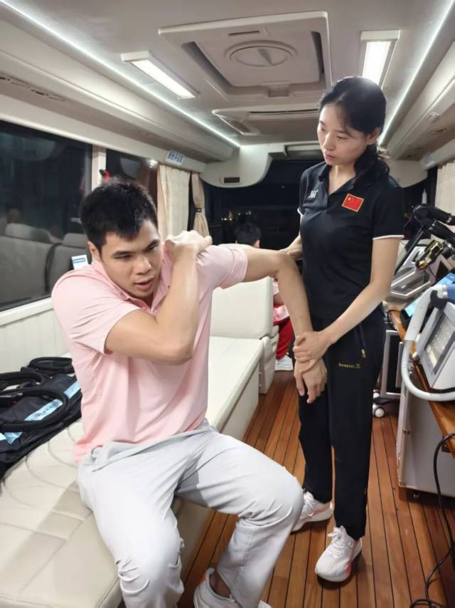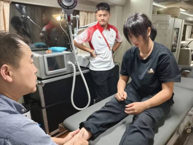 保障车上配备了由“主任医师—康复治疗师—数据工程师”组成的专家团队。赛事期间,保障车辆驻守赛场,专家现场驻点;训练阶段,保障车辆驶入训练基地,将科技医疗服务送至运动员驻地楼下。
