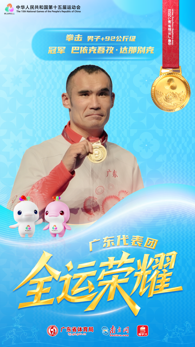 广东队选手巴依克吾孜·达那别克以稳健的发挥战胜对手,勇夺金牌!