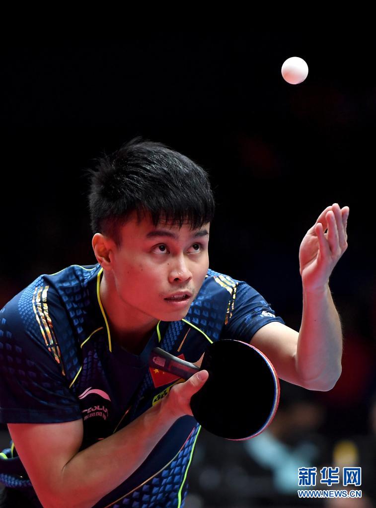 5月7日,周启豪在比赛中发球(新华社记者 李安 摄)