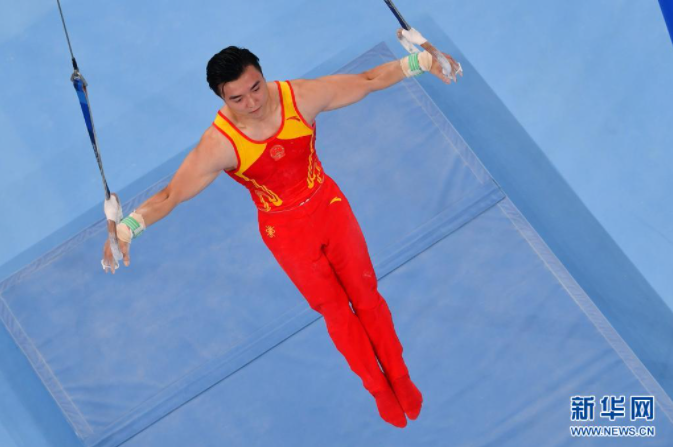 中国选手刘洋夺得奥运会体操男子吊环冠军