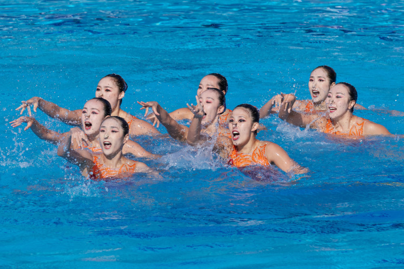 新奥运周期,黄雪辰、孙文雁等老将退役,中国花样游泳队准确把握项目特点,以最快时间完成重组,全队练体能、扣技术,以艰苦卓绝的训练赢得进步,为求在新周期第一届国际大赛中脱颖而出占据高地,最终果然成功把握先机,为巴黎奥运打下基础。中国花泳队教练组组长张晓欢说:“包揽集体项目的技术自选和自由自选两枚金牌,这是中国花游队自1983年建队以来,在奥运集体项目上取得的历史性突破。我们的目标就是全力以赴把在新老交替、最困难的这七个月里艰苦训练的成果展示出来,对得起自己的努力。”