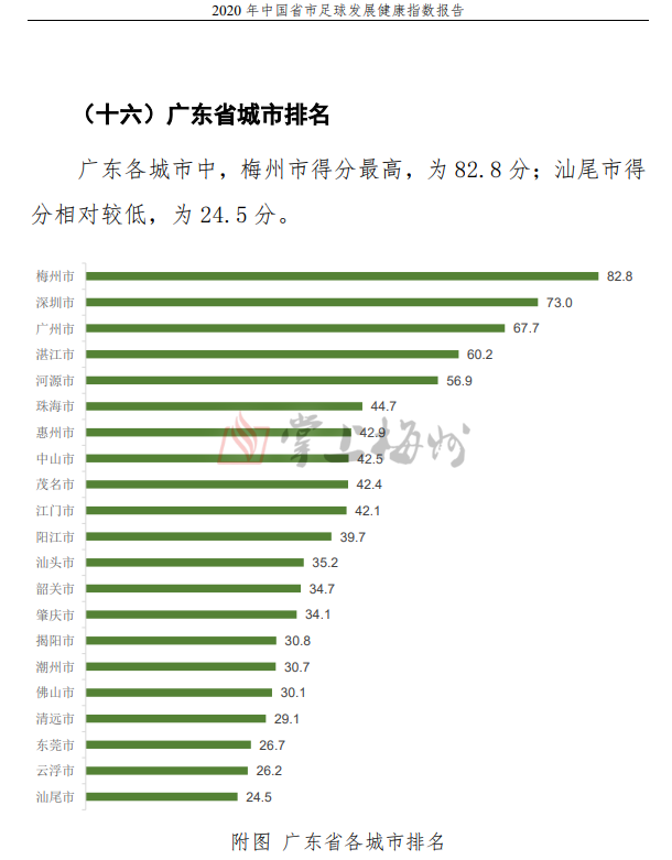 中国省市足球发展健康指数城市排名公布 梅州位列第一